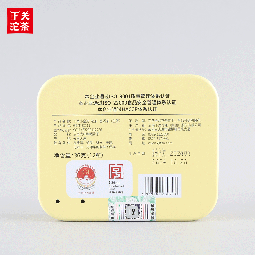 36克单盒装下关小金沱 普洱茶(生茶)2024