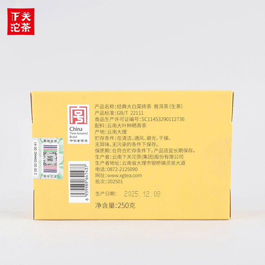 250克单盒装经典大白菜砖茶 普洱茶(生茶)2025